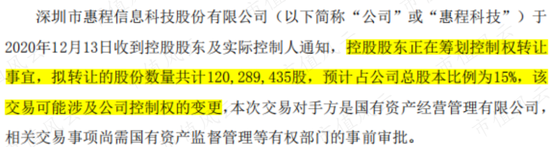 从今日的公告来看,本次惠程科技公告拟向国有资产经营管理有限公司转让股份数量1.20亿股,占总股份比例15%,控制权涉及再次变更。