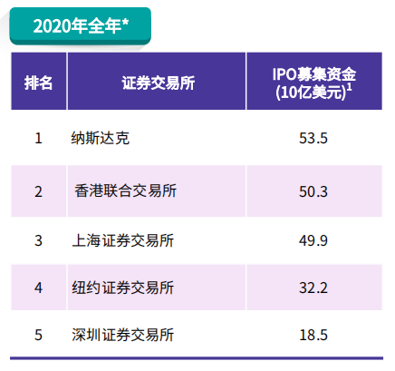 尽管2020年有着疫情、政治、社会等不确定因素,但在这个特殊时期,全球IPO市场依旧展现出强大的韧劲。据彭博及毕马威提供的数据显示,2020年全球IPO市场募资金额预计较去年增加超过23%,其中香港证券交易所创下了自2011年以来募资总额新高。
