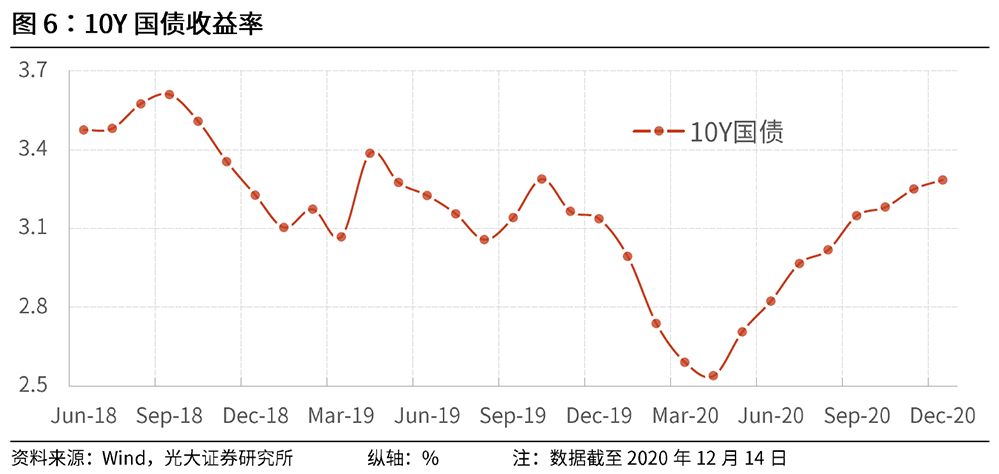 第一,12月15日的MLF超额续作充分满足了金融机构需求,这充分体现出央行稳定1Y资金利率的意图。但部分投资者担心,受到基数因素的影响,2021年一季度经济增长的同比数据会出现大幅改善,这将促使货币政策明显紧缩,甚至预期近期央行可能会提高MLF利率。我们认为,宏观调控部门在进行调控时会将低基数的影响予以剔除,客观地看待经济运行态势。此外,MLF利率是央行政策利率,其具趋势性的特征,不易在短期内快速变动运行方向。如果在前期MLF利率下调的基础上,近期急于将其上调,待经济同比数据回落后又重新下调,则可能扰乱市场主体对于政策的预期,因此央行选择该策略的概率很低。而且,MLF利率的上调会给LPR以及贷款实际利率形成“涨价”压力,这与金融机构合理让利、降低企业融资成本的大方向略有不同。