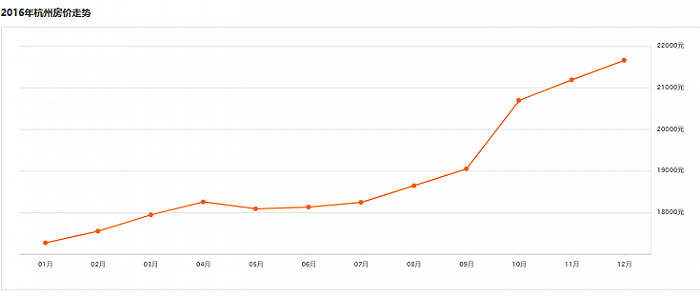 杭州房价的猛涨在2016年G20峰会后。据安居客2016年杭州房价走势图显示,10月杭州的房价了上涨8.63%。到今年12月,杭州房价达到平均每平米28404元,而像新杭州人选择居住的余杭区未来科技城区域,房价已经上涨到了每平米33349元。
