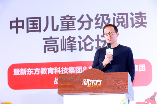 为此新东方教育科技集团与Scholastic美国学乐出版集团于12月15日联合主办了“中国儿童分级阅读高峰论坛暨新东方教育科技集团于美国学乐出版集团战略合作发布会”。活动上,新东方教育科技集团董事长俞敏洪,美国学乐出版集团亚洲总裁Frank Wong,国家英语课程标准专家、教育部首批国培专家鲁子问,首都师范大学外语学院英语教育系副教授任真,美国学乐出版集团大中华区总经理方泽坤,新东方教育科技集团国际合作部总经理陈庄,新东方分级阅读(新东方小书童)高级总监傅诗淇,美国学乐出版集团中国培训与学习发展经理任小池,Ivy Education幼儿园高级执行总监、哈佛大学多元智能教育认证培训师Ryan Cardwell,新东方分级阅读(新东方小书童)教研经理、美国蓝思官方认证培训师朱丽华等众多大咖深入剖析与探讨了当前英文分级阅读的现状,为中国儿童的英语启蒙方法和分级阅读的应用场景指明了方向。