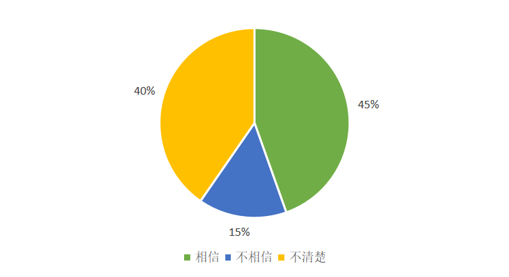 而对于数字人民币,其特征是“可控匿名”,意思是具有一定匿名性。对这一特征,44.57%的被调查者选择相信,不清楚这一特征的被调查者则有40.38%,选择不相信的被调查者有15.05%。