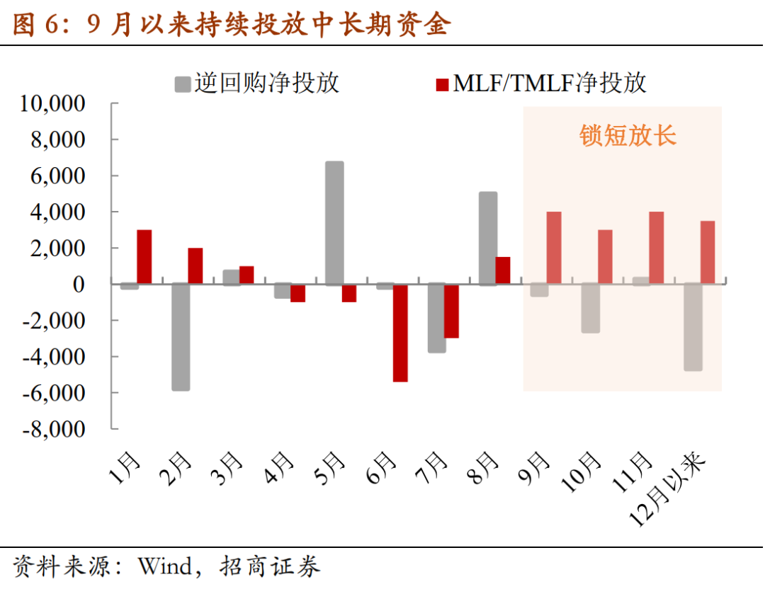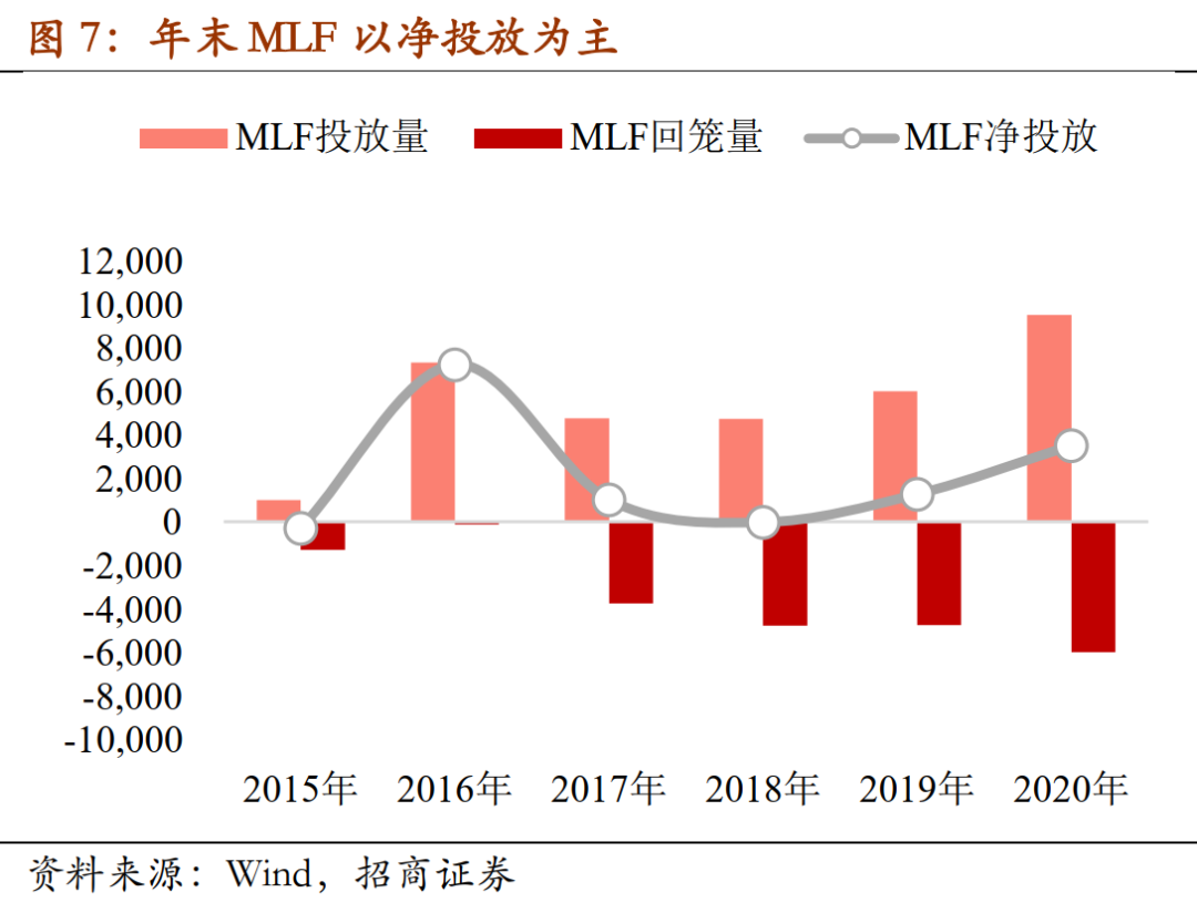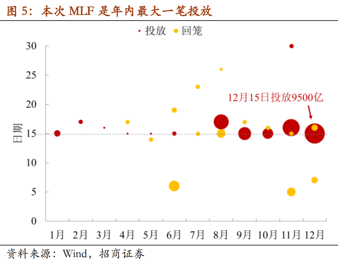 12月15日,央行开展9500亿1年期MLF操作,本月7日和16日分别有3000亿MLF到期,MLF净投放3500亿,为连续第5个月净投放。本次MLF操作是年内单次金额最大的一笔(其次是11月16日的8000亿)。这是近期央行在MLF操作上又一次“送温暖”。