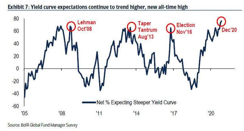 在接受调查的投资者中,有42%的人预计新冠疫苗将在2021年第二季度开始提振经济成长,而预测收益率曲线会更陡峭的人数比例达到创纪录的76%。
