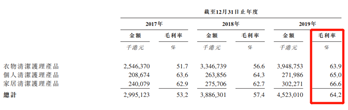 公司三大产品毛利率高达64.2%。其中,家居清洁护理产品毛利率高达66.6%,衣物清洁护理产品毛利63.9%。