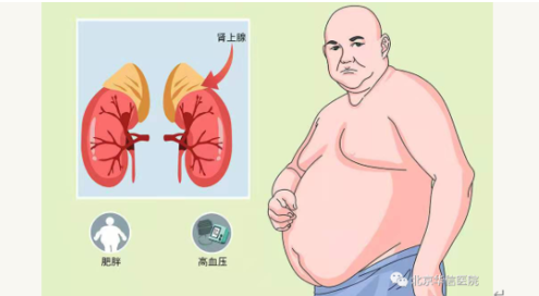 这位患者就是因肾上腺肿瘤导致糖皮质激素(主要是皮质醇)分泌过多所致的高血压,又称“库欣综合征”,有多种类型,包括库欣病、异位ACTH综合症、肾上腺肿瘤等。典型病例表现为向心性肥胖、满月脸、多血质、皮肤紫纹等,重型表现为体重减轻、高血压、水肿、低钾性碱中毒,可并发心力衰竭、病理性骨折、脑卒中、肺部感染等。一般依据临床症状或血液糖皮质激素分泌异常可诊断,治疗上依据不同的病因进行相应治疗,如垂体、肾上腺肿瘤等可经手术治疗,一般病情在数月后逐渐好转。