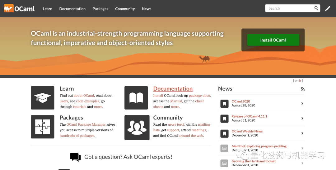 全称Objective Caml,是Caml编程语言的主要实现,由Xavier Leroy,Jérôme Vouillon,Damien Doligez,Didier Rémy及其他人于1996年创立。OCaml是开放原始码项目。此项目的管理和大部分维护工作交由INRIA。