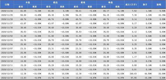 12月16日,仁东控股开盘再度跌停,上一交易日跟风买入的投资者直接被“埋”。截至收盘,股价为13.63元/股,成交额57.55亿元,换手率达10.28%。