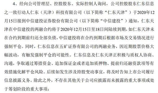 同日,仁东控股在“股票交易异常波动公告”中,披露了“强行平仓”的风险,将“隐藏”多时的中信建投和五矿证券带出水面——