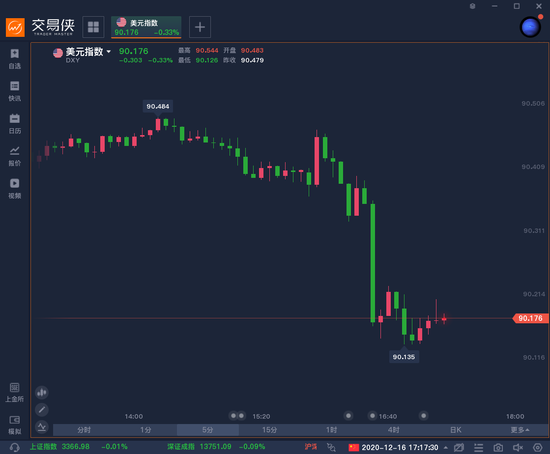 欧盘时段,美指持续走低,最低一度触及90.13,创下2018年3月以来最低。非美走高对美元构成压力,欧元兑美元自2018年4月以来首次突破了1.22关口。