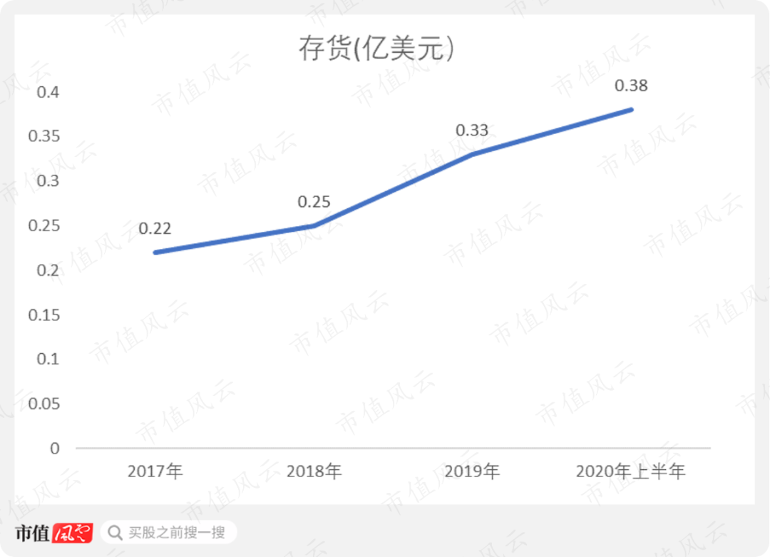 Vesync最大的单个资产科目就是存货,这几年存货的规模不断扩大,从2017年的0.22亿美元上涨至2020年上半年的0.38亿美元,存货的不断增加,也会影响到现金流的表现。