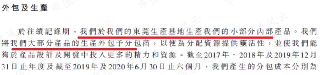 公司自己专注于产品的设计和开发,东莞的生产基地只是承接少部分的生产功能,大部分的制造工作,还是交给分包商去做。