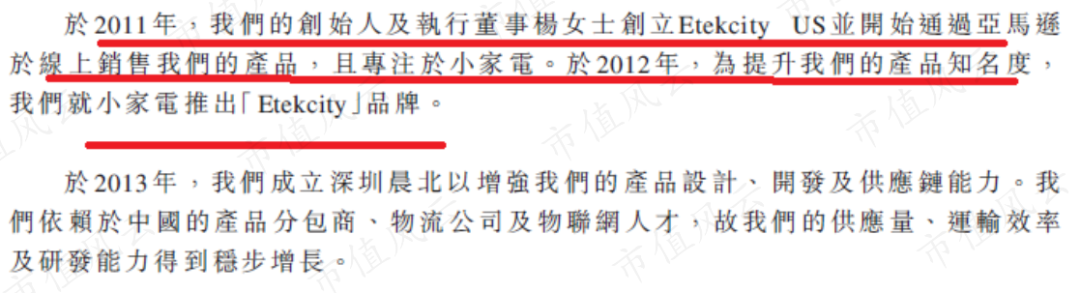 2012年,为提升产品知名度,公司正式推出自有的小家电品牌——Etekcity。为了加强自有产品的设计和研发,以及供应链的建设,公司还专门了成立深圳市晨北科技有限公司(以下简称“深圳晨北”)。