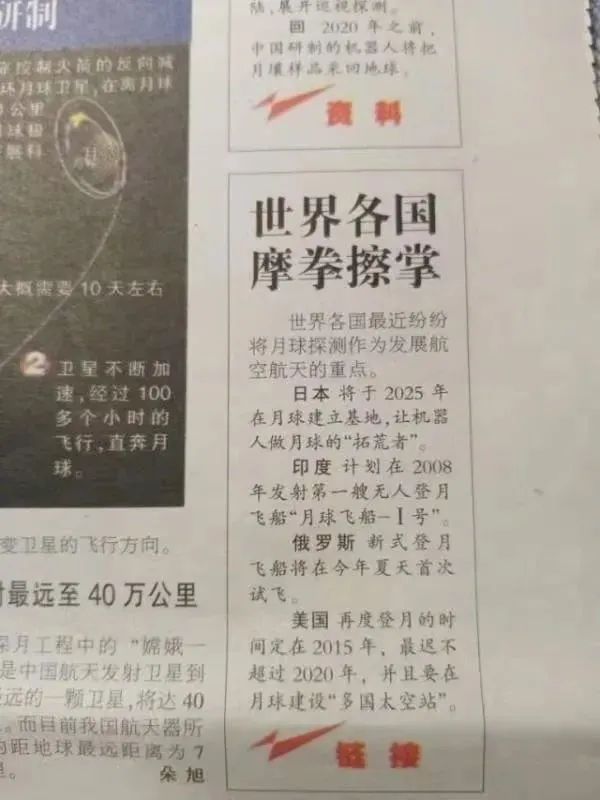 在中国探月工程科普的下面,还有一个小方框,介绍了当时世界上其他国家雄心勃勃的月球探测计划。