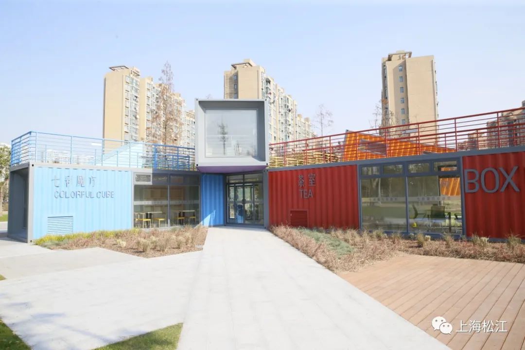 “红、橙、黄、绿、青……”松江方松体育公园内,孩童对几个彩色的集装箱颇为好奇。众多市民前几天经过公园时候,就被这些集装箱吸引,不少人趁着好天气时候,特地从老城区带孩子来游玩。