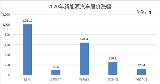 据豹变统计,截至12月17日收盘,蔚来股价年内已经翻了10倍,投资10万元轻松变百万,而特斯拉涨了6.4倍,涨幅最小的理想汽车也涨了90%。