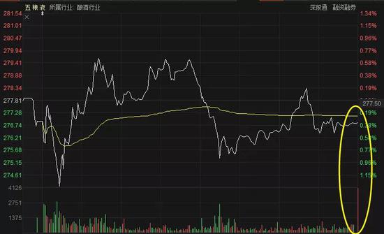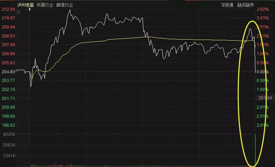 例如:贵州茅台盘中最高涨0.17%,收跌1.10%,尾盘大单2.71万手,合计2.54亿元;五粮液盘中最高涨0.65%,收跌0.34%,尾盘大单15.1万手,合计1.14亿元。泸州老窖则更为明显,盘中最高涨3.52%,不过收跌0.08%,尾盘大单19.2万手,合计8.24亿元。