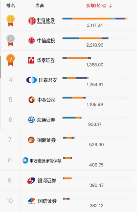 数据显示,中信建投今年在IPO、增发、可转债三方面均有一定程度提高,截至12月18日,其以795.39亿元的IPO成绩从去年第三名跃居今年第一。