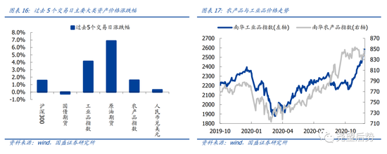 大宗商品方面,截止至周四,国内原油期货上涨6.86%;工农业产品走势同步,工业品上涨4.12%,农业品上涨1.59%;过去5个交易日NYMEX原油上涨3.04%,收于48.40美元/桶,伦敦黄金现价上涨2.65%,收于1884.98美元/盎司。