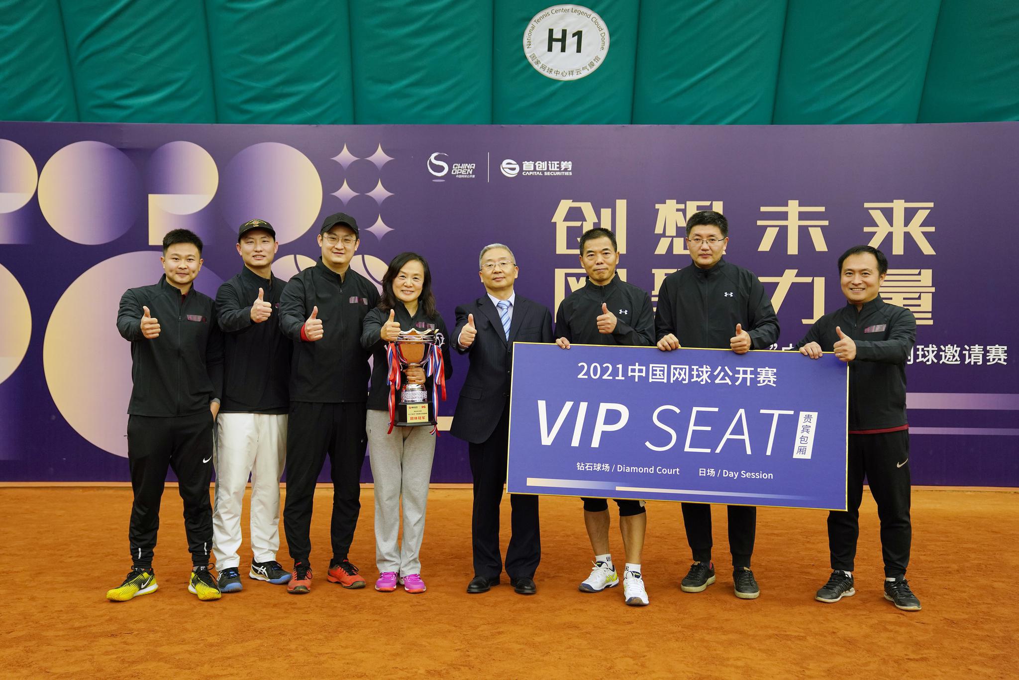 在顶级巡回赛标准的专业护航下,比赛顺利进行,精彩随处可见,诸多金融界的网球高手尽显飒爽英姿,在红土球场上演颇有专业风范的滑步、网前截击等技术,最终中国银行队和清华紫光金融云团队各自获得小组第一会师决赛。经过三场激烈的双打比拼,清华紫光金融云团队收获了冠军,他们将获得 2021 年中网赛期正选赛 VIP 包厢门票和参加中网赛期职业球员赛场叙活动的机会,获得亚军的中国银行队队将获得 2021 年中网正选赛 VIP 包厢门票,其余参赛队伍则收获了中网纪念品。首创集团党委常委、副总经理苏朝晖和北京中国网球公开赛体育推广有限公司总裁李晓斌出席颁奖典礼并分别为冠亚军颁奖。