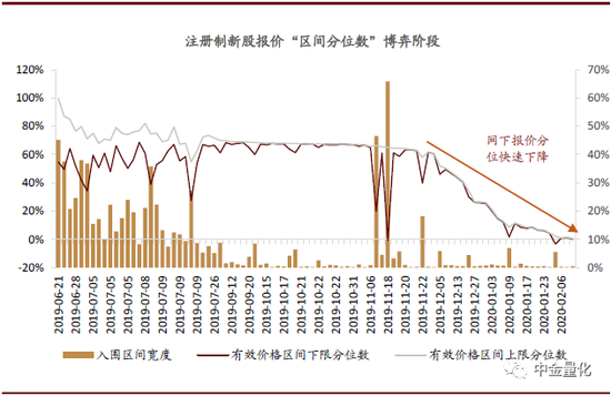 图表:“区间分位数”博弈:有效报价入围区间急剧收窄,发行价逐渐接近投价报告价格区间下限