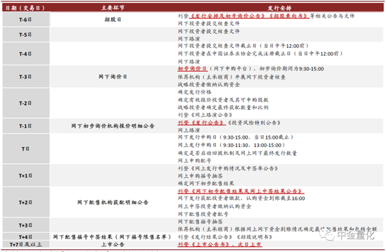 ►招股日:公司刊登《发行安排及初步询价公告》、《招股意向书》等,披露发行数量、询价日期及后续大致发行流程,参与者可根据公开信息拟定初步报价意向及申购数量。