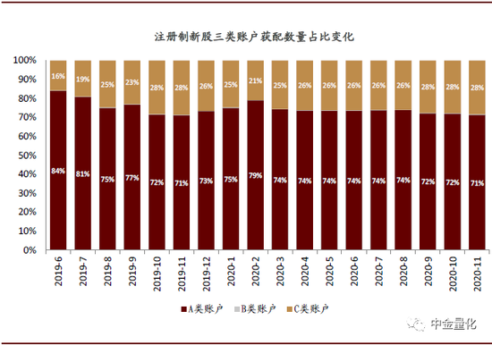 注册制新股AB类账户获配比例逼近临界值,A/C类账户中签率差距或将逐渐拉大