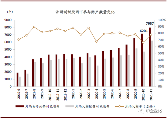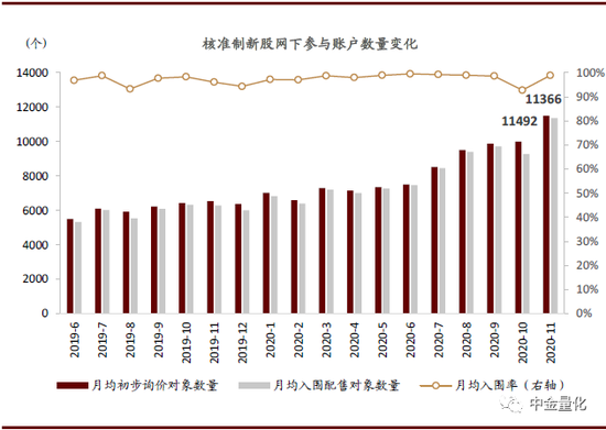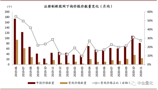 资料来源:万得资讯,中金公司研究部;注:数据截至202011.30,注:入围率=有效报价次数合计/初步询价次数合计