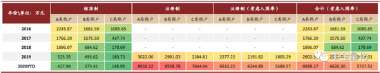 制度红利延续,2020年打新收益再上台阶。2015年底网下新股申购取消预缴款制度,2016年起正式实行信用申购,假设不考虑账户规模,每只新股均按照申购上限顶格申购,截至2020年11月底,A/B/C三类投资者网下打新收益分别达到6938万元、6620万元、5738万元(考虑注册制新股入围率)。横向对比,注册制新股贡献核心收益,核准制新股打新收益贡献甚微;纵向对比,2020年注册制改革深入,打新收益创2016年以来高点。