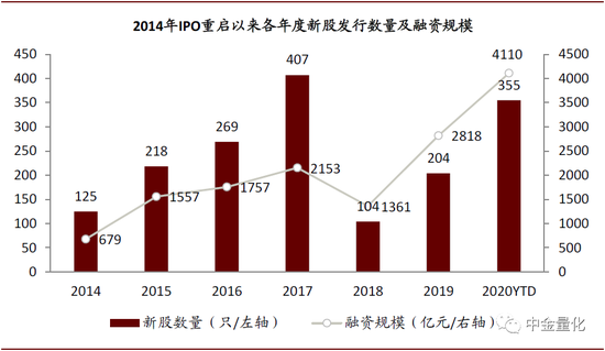 图表:2020年初至今IPO融资规模创2014年IPO重启以来新高