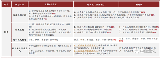 图表:A股市场各板块网下配售制度对比,配售环节:注册制网下配售大幅倾斜机构投资者,尤其重视中长线投资者
