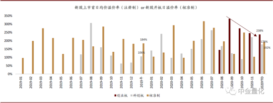 资料来源:万得资讯,中金公司研究部;注:按照2020年11月询价的注册制新股数据统计