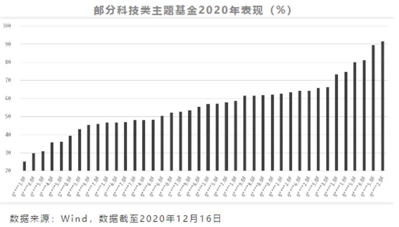 从收益情况来看,科技类主题基金今年以来分化颇为明显,最高收益率可达91.64%,而最低者仅获得25.07%的回报,首尾相差逾60个百分点。