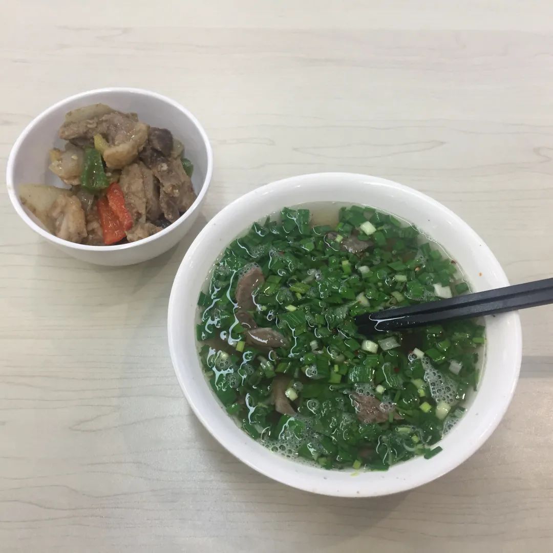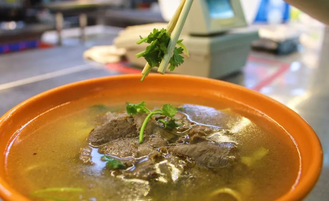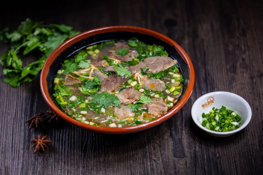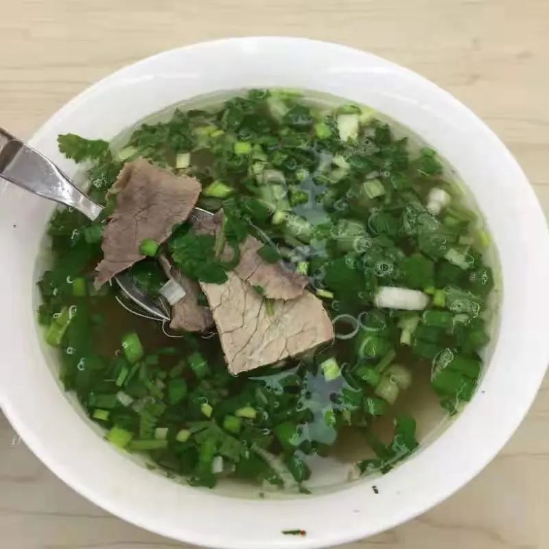 牛肉汤泛着呈淡淡的金黄色,点点油花漂浮,辅以清香葱花。一口汤,鲜香四溢。一口汤,暖人心胃。