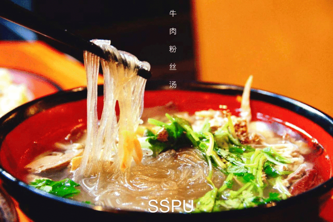 酸汤肥牛的肥牛软嫩有鲜味,汤头香辣里面带点酸;汤水醇香,咸香中弥漫着一丝清甜的牛肉汤面、牛肉粉丝汤;给你带来“一清二白三黄四绿“视觉呈现的羊肉泡馍。食在二工大,暖胃又暖心。