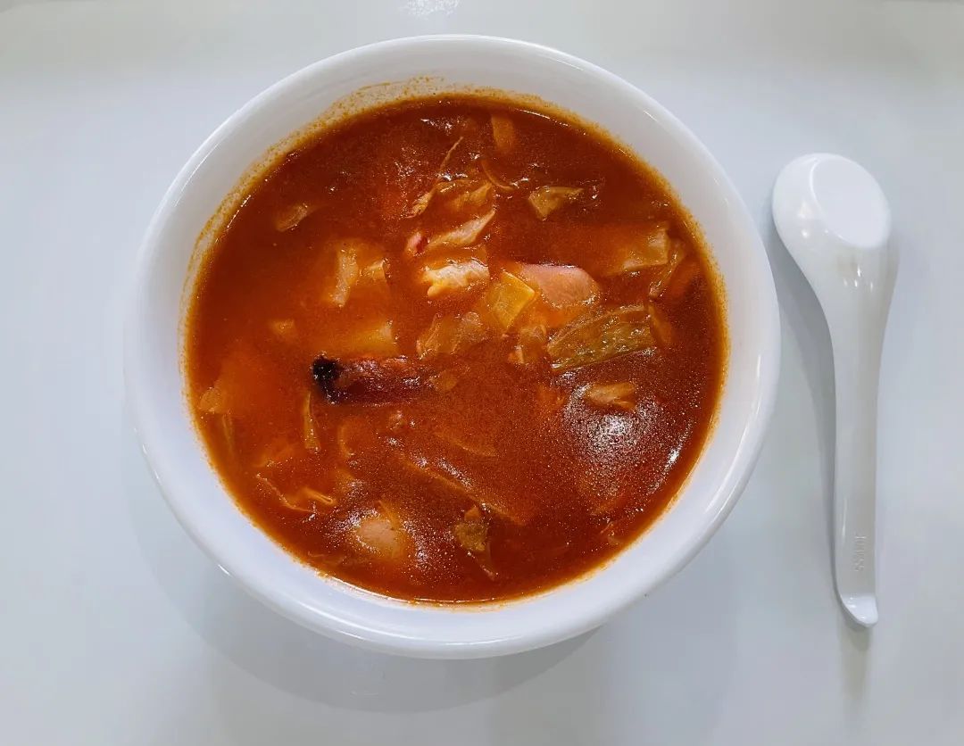 这一道汤浓料多、酸中带甜、鲜滑爽口的罗宋汤,又叫“乡下浓汤”,是从外来菜品演变至符合上海本地口味的、具有海派特色的家常美味,作为一份冬日例汤受到上海电力大学广大师生欢迎。