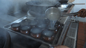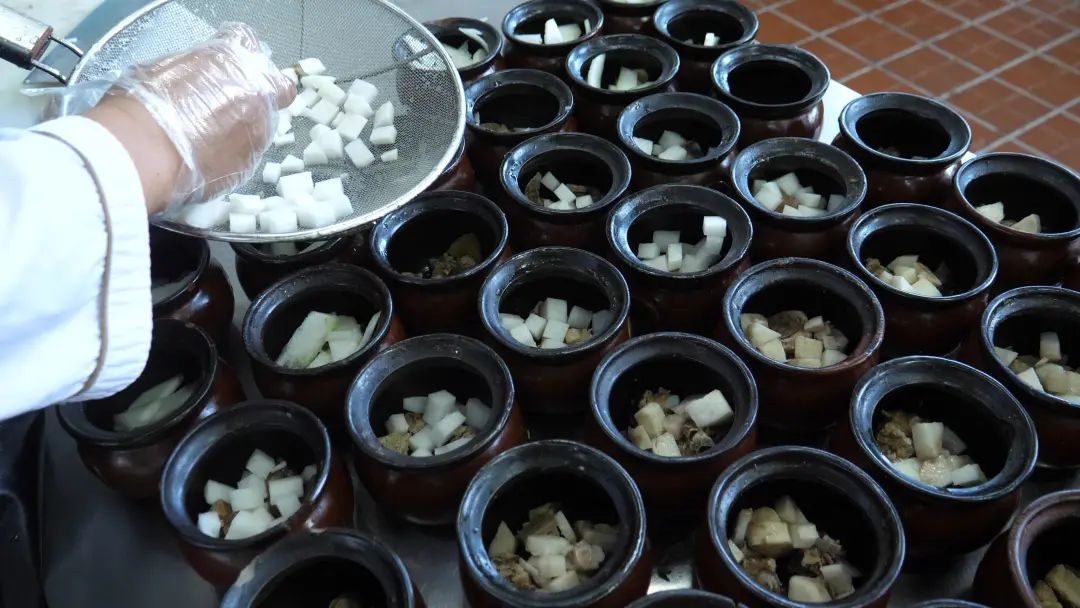 为了给学子们补充上持续一天的暖意,海大食堂精心制作了种类繁多的瓦罐汤,有木耳乌鸡汤、莲藕排骨汤、山药小排汤和香菇老鸭汤等。大瓦罐中层层列满的小瓦罐,是辛勤的承载,也是关怀的寄托。