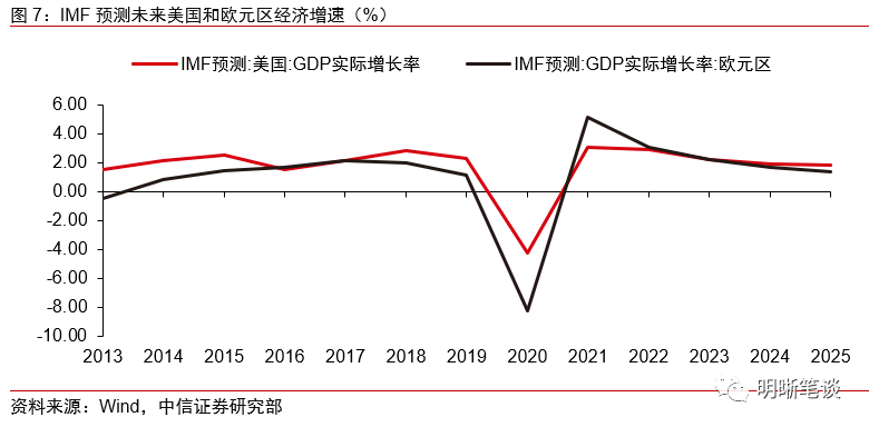 对比当前和2018年美元指数跌破90的情形,我们认为两个时期在原因上既有借鉴又有差异。在增速差方面当前欧元区相对美国经济增速的领先预期或类似于2017年的美欧增速差收敛带来的美元走势影响,而货币政策方面由于当前海外主要经济体仍处于维持或加码宽松状态,政策差方面的影响两个时期或有所不同。首先从增速差的角度来看,2017年美元指数下跌的部分原因来自于欧元区经济复苏加速,美国相对欧元区领先的经济增速差收窄,导致欧元相对美元走强,美元指数走弱。而从当前情况来看,在疫情的影响下欧美经济形成了经济增长预期之间的差异,也导致了欧元相对美元走强,区别在于2017年是欧元区经济复苏落后追赶,当前是在疫情影响下有欧元区复苏形势好于美国的预期,根据国际货币基金组织IMF发布的全球主要经济体经济增速预测,IMF预期在2021年和2022年欧元区经济增速均将高于美国,这也形成了欧元相对美元升值的一个持续性原因。而在货币政策方面,当前海外主要经济体仍处于维持或者加码宽松的状态,这与2017年欧央行逐步货币收紧,缩窄美欧央行政策差或有所不同。