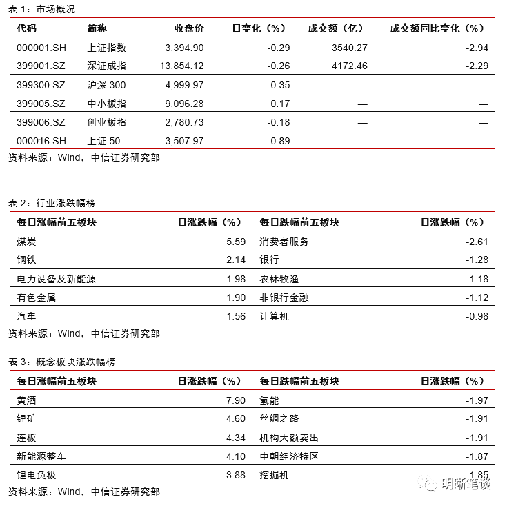 2020年12月18日,银存间质押式回购加权利率全面上行,隔夜、7天、14天、21天和1个月分别变动了34.53bps、22.39bps、74.94bps、10.91bps和5.64bps至1.71%、2.11%、2.58%、2.92%和3.01%。国债到期收益率大体上行,1年、3年、5年、10年分别变动-0.06bps、1.14bps、0.75bp、1.00bps至2.73%、2.96%、3.11%、3.29%。上证综指下跌0.29%至3394.90,深证成指下跌0.26%至13854.12,创业板指下跌0.18%至2780.73。