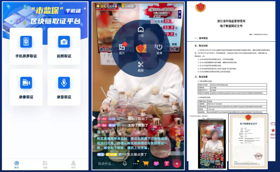 近日,全国首个基于区块链技术的取证App“市监保”在浙江上线。这是浙江省市场监管局继七月上线首条区块联盟链“市监链”及相关平台后,发布的一款取证应用,将在面向社交、直播电商的监管执法中发挥重要作用。