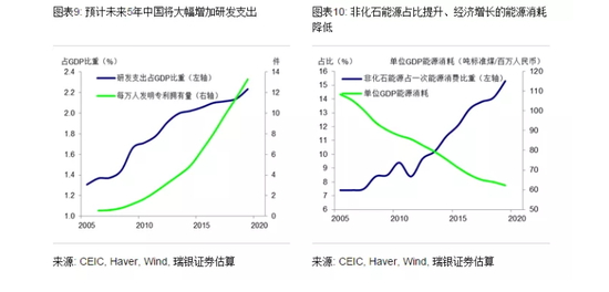 首当其冲提高科技创新和产业自主可控能力。会议明确将强化国家战略科技力量和增强产业链供应链自主可控能力作为首要任务。重点包括抓紧制定实施基础研究十年行动方案,完善激励机制和科技评价机制,尽快解决一批“卡脖子”问题,打牢基础零部件、基础工艺、关键基础材料等基础。我们预计未来几年美国在科技和国家安全领域的对华态度可能依然偏强硬,拜登上任后可能会维持目前美国对中国在高科技和关键零部件获取上的限制。不过,我们相信中国会继续显著增加在科研创新方面的投资,进一步加强知识产权保护。