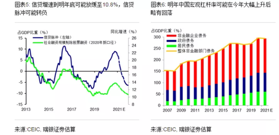 货币和信贷政策:会议将货币政策的表述从两会时稳健的货币政策要“更加灵活适度”调整为“灵活精准、合理适度”。此外,政府还要求保持宏观杠杆率“基本稳定”,处理好恢复经济和防范风险的关系。与之对应,会议指出保持货币供应量和社会融资规模增速同名义经济增速基本匹配,而两会时的表述为货币信贷增速“明显高于去年”。这些都明确指向货币信贷政策的正常化。我们预计明年流动性环境会相对偏紧,明年下半年央行可能小幅上调政策利率,信贷增速可能会放缓到10.8%(今年11月为13.7%)。基于此,我们预计明年中国整体非金融部门债务占GDP的比重可能会在今年上升25个百分点后下降2个百分点。不过,虽然明年杠杆率可能下降,但我们认为政策调整和去杠杆的力度相比2017-18年会温和得多。