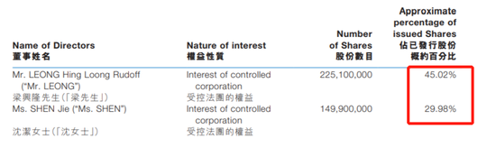 公司股权高度集中,梁兴隆持股公司45%的股份,此前为公司董事局主席,2019年6月卸任,2020年4月1日卸任执行董事,为香港注册建筑师。现任执行董事兼CEO为沈洁持股公司29.98%的股权。前两大股东持股75%。其中,梁兴隆2.25亿股中的0.74亿股质押给了Voice Chosen Investment。