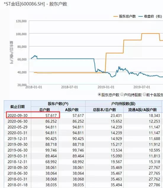 截至今年三季度末,*ST金钰股东户数仍有5.76万户,接近6万户。