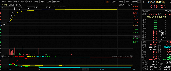此外,一直滞涨的格林美也迎来放量涨停。开盘后,格林美股价在大单助推下快速上行,9点40分便封上涨停,不过,涨停价资金分歧较大,盘中多次开板,直至11点26分在度封死涨停,截至收盘,股价报收6.19元,总市值近300亿。