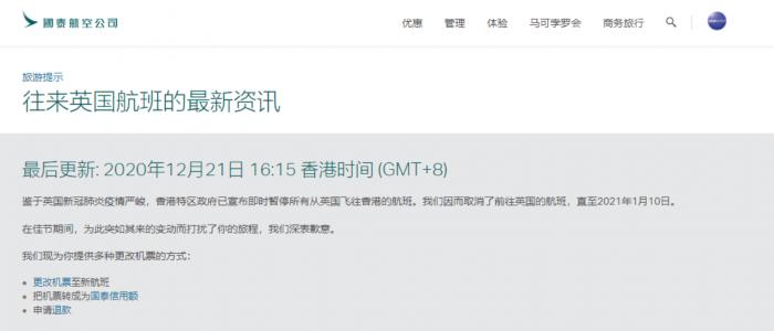 “我本来计划香港转机到伦敦,但下午收到国泰航空公司的通知,表示因为香港政府已宣布暂停所有英国飞往香港的航班,国泰航空已经取消了所有前往英国的航班,直至2021年1月10日。”计划1月2日前往伦敦的Chen yi告诉记者,“我还接到了多位亲戚朋友的电话轰炸,建议我不要前往英国,全场通过网课完成学业。虽然同学群中也有已经到英国的同学表示情况并不是这么糟糕,但我依旧有些担心。”Zhang Yuan说。