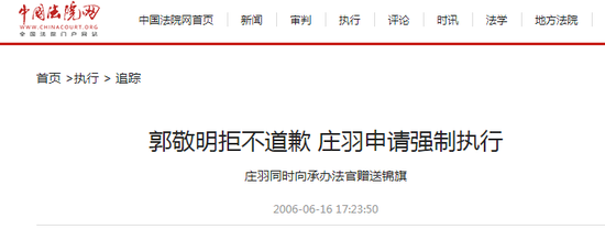 但郭敬明也拒不道歉。后来,法院不得不实施强制执行。