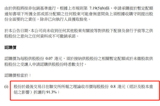 该集团指,供股将按非包销基准进行,倘供股不获悉数认购,将尽力将不获认购供股股份配售予独立承配人,剩余不获认购供股股份将不会发行而令供股规模相应缩减,而供股无设最低筹集金额。