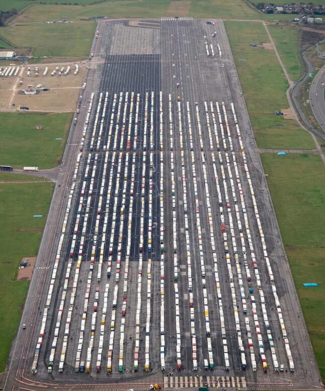 边境的关闭导致数千辆卡车在通往英吉利海峡港口的道路上排成长队,其中一些卡车装载着已经变质的新鲜农产品。