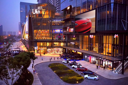 成都金融城悠方购物中心,常常是人流攒动,一楼东边入口处,最显眼处是特斯拉(Tesla)体验店。